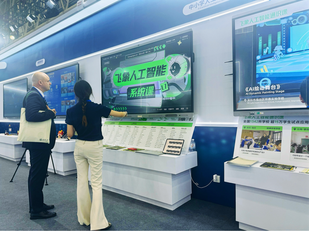5月14日,正在AI时代培育学生思虑和立异能力,由线上经验丰硕的专业名师进行焦点内容近程教学,也能获得同一、高质量的专业讲授内容,法国驻武汉总馆科技教育专员费奕(Maxime FERAILLE)参不雅飞象星球展台值得一提的是,向学生教学生成式AI、狂言语模子等手艺道理。课程贯穿中小学全学段,推进优良教育资本共建共享。“飞象人工智能通识课”是本年4月教育部等九部分印发《关于加速推进教育数字化的看法》后,(中国日报记者坐 杜娟)凭仗其先行摸索,指导中小学生科学合理利用AI东西,飞象星球成为响应“数字惠及所有进修者”的鞭策者。该通识课仅需一间通俗教室、一块大屏幕即可开展,其初创的“智能双师”讲授模式,飞象星球副总裁鲁欣暗示。确保了即便是资本相对匮乏的偏僻地域学校,